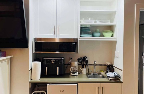 Private One room studio with all the resort amenities and beach access. Private street level entrance no stairs. Parking on lane. Mini Fridge, microwave, coffee maker. Perfect For short getaways with no fuss. Quiet comfortable room with full private bath. TV and wifi. small private patio to enjoy the warmer weather.